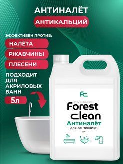 Чистящее средство Forest Clean Антиналет - это антибактериальное концентрированное гипоаллергенное биоразлагаемое кислотное средство для уборки ванны и ванных комнат, душевых кабин, раковин, сантехники, хромированных смесителей, унитаза, писсуаров, а также кафеля, керамики, стекла, нержавеющей стали, пластмассы, акриловых ванн и других кислостойких поверхностей.